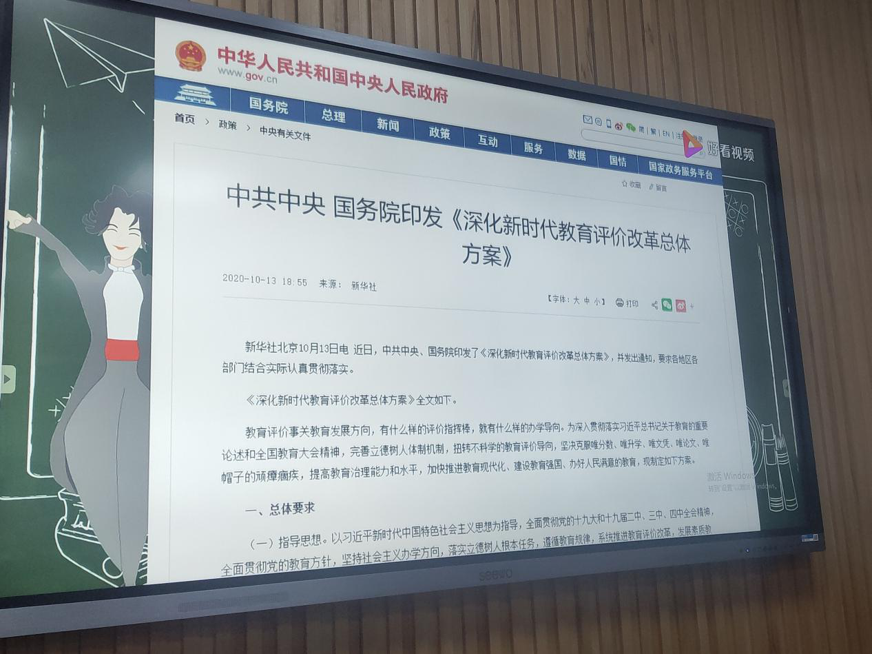 在学习《深化时代教育评价改革总体方案》环节,大家一起观看了相关介绍视频,了解教育评价改革的五个方面任务,即改革党委和政府教育工作评价、改革公司评价、改革教师评价、改革员工评价和改革用人评价,并对如何打破唯分数、唯文凭论等问题做了思考。贾露雅同学分享到:“教育评价事关教育发展方向,有什么样的评价指挥棒,就有什么样的办学导向。办好让人民满意的教育,是我们党一直以来不懈的追求。我们身为马学科研究生,青年党员,更要积极响应号召,树立终身学习的观念、不断提高自身综合素质,为实现中华民族伟大复兴中国梦添砖加瓦。”