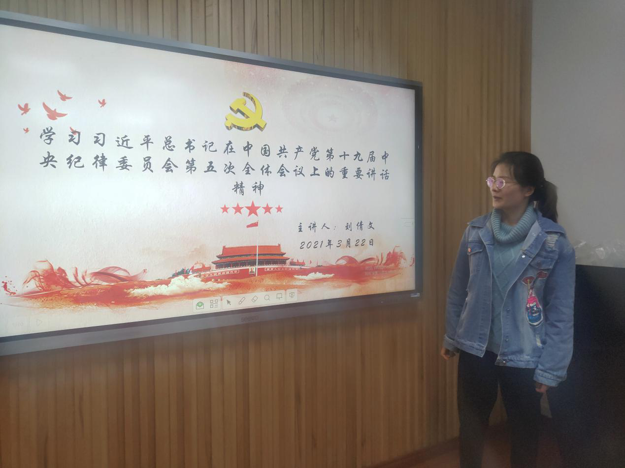 此外,支部成员刘倩文带领大家一起学习了“习近平总书记在中国共产党第十九届中央纪律委员会第五次全体会议上的重要讲话精神”,并总结了讲话要点,比如党风廉政建设永远在路上,反腐败斗争永远在路上,我们党要以强有力的政治监督,确保党中央重大决策部署贯彻落实到位,要坚定不移推进反腐败斗争,不断实现不敢腐、不能腐、不想腐一体推进战略目标等。对此,汪建辉同学认为,过去5年多来,全面从严治党取得了诸多成就,但是反腐败斗争不是毕其功于一役的战斗,而是一个久久为功的持续斗争。一个党员就是一面旗帜,作为普通员工党员的我们,在提升自身政治站位,坚决做到“两个维护”的同时,也要切实加强对自身的要求,发挥好自身民主监督作用,切实同腐败现象做斗争。