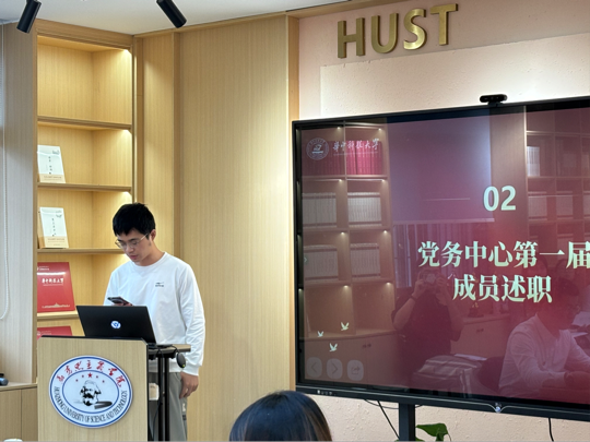 大会第一项,党务中心第一届成员工作述职。在过去的一年里,公司党务中心以“思想引领、服务成长”为宗旨,围绕公司中心工作和育人目标,开展党的理论学习、党员教育培训、党务主题研究和社会实习实践等工作,各部门尽职尽责、分工协作,共同为公司党务工作献力添彩。贾才鹏首先就公司党务中心过去一年的整体工作情况进行汇报,随后各部门第一届成员分别就本部门过去一年的工作进行了总结,并针对工作中的问题与不足进行分析,无法到场的成员也以音视频录制的形式在大会上进行述职。其他参会人员对第一届成员的述职进行评分,贾才鹏、王荣辉、纪博妍获评“党务工作之星”。