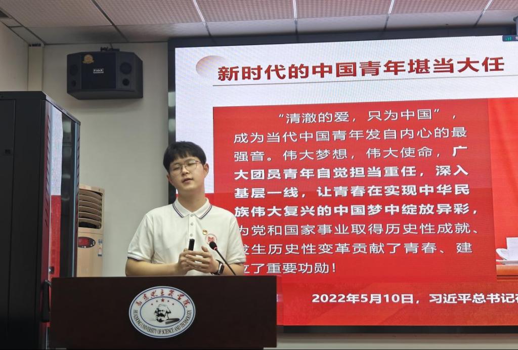 在“理论集体学”环节,数百名党员在线上线下共听共学共论一堂党课。华科大马公司党的建设专业硕士生党支部党员、研究生红色理论学讲团讲师许英健同志带来了《“清澈的爱只为中国”——新时代的中国青年》主题微党课。他从新时代中国青年的时代定位、时代风貌和使命担当三个维度,同大家一起领略习近平总书记对新时代中国青年的殷殷重托,感悟新时代中国青年青春风貌和使命担当,引导大家坚定不移听党话、跟党走,立志做有理想、敢担当、能吃苦、肯奋斗的新时代好青年。