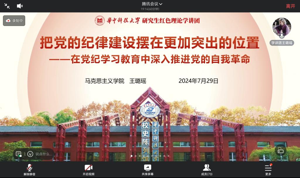 研究生红色理论学讲团讲师王璐瑶为支部成员带来以“把党的纪律建设摆在更加突出的位置”为主题的微党课。王璐瑶同志首先带领大家回顾了中国共产党自建立之初至新中国成立、改革开放、迈入新时代以来的纪律建设历程,强调了党始终将纪律建设放在重要位置;接着深入解读了《中国共产党纪律处分条例》的诞生与演变,从最初的制定到每一次的精心修订,都展现了党对纪律要求的不断强化与完善。她特别强调了最新修订的《中国共产党纪律处分条例》所体现的纪律建设的连续性与时代性,指出了在新时代背景下应当特别关注的重点内容。