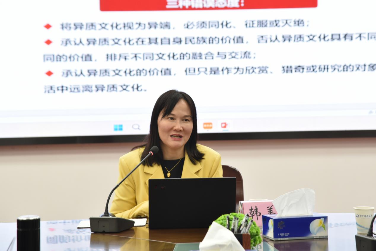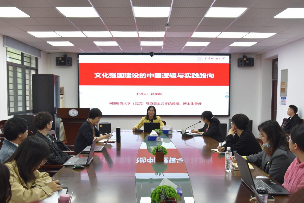 (通讯员:徐薇)4月12日上午,第123期喻园求真学术讲座在东七楼203会议室顺利举办。本次讲座特邀中国地质大学(武汉)yl6809永利集团二级教授、博士生导师、国家社会科学基金重大项目首席专家韩美群教授主讲。yl6809永利集团思想政治教育研究所所长梁红教授,青年教师唐丽敏、邱思纯,以及部分硕博研究生参加会议交流。讲座由马克思主义中国化研究所所长文红玉教授主持。