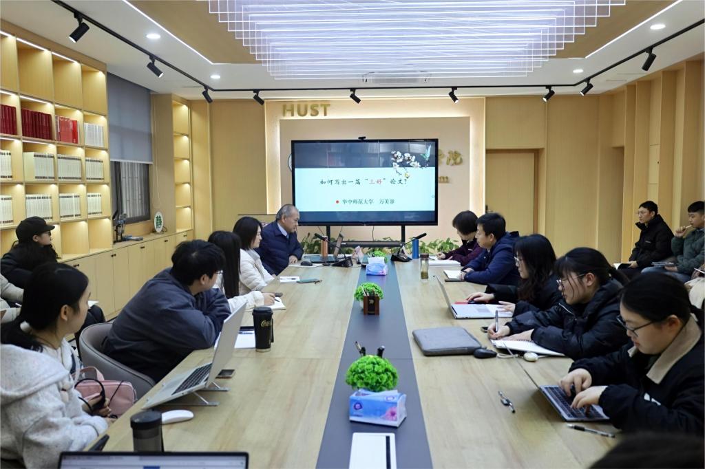 随后,万美容教授以《如何写出一篇“三好”论文?》为题展开分享交流。他以“好论文的一种标准”为主线,从找出好题目、写出好内容、改出好容貌三个维度深入剖析。首先,他强调论文题目要做到表述简洁、反映内容且具备创新性,好题目源自大量的文献阅读与文献综述的撰写,同时要做到理论联系实际,在实际问题的探索中确定研究对象,明确研究领域。随后,他指出好文章并非轻易提笔而就,而是要在前期做足功夫,一是要注重调查研究,让文章扎根现实,具备实践支撑力;二是要通过研读大量文献,明晰员工动态与前沿观点,为文章筑牢理论基石。进而他补充道,一篇优秀的论文不仅需要有好的内容,还需要经过严谨细致的修改和润色,并详细阐述了重新审视文章选题、深化研究内容、优化层次结构、美化语言表达、检查格式规范五个关键步骤。最后,万美容教授勉励在场师生在论文写作的漫长修行中,创作出高质量的“三好”论文,为所在学科领域贡献独特的智慧与价值。