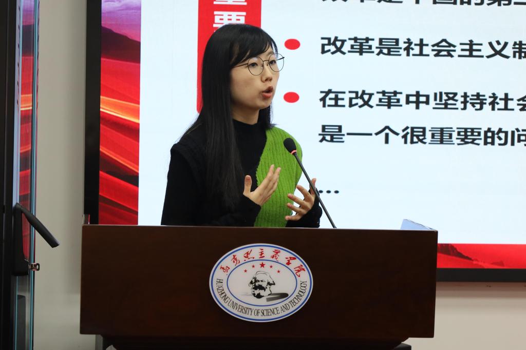 接着,唐丽敏和丁滋芳围绕“党的二十届三中全会精神融入概论课”进行了深入探讨。唐丽敏提出应以当前我国经济科技发展成就以及民生改善现状的时事热点进行引入,串联起党的历次三中全会的成果,明确改革是社会主义制度的自我完善和发展,将进一步全面深化改革的精神系统融入整个课程教学体系。丁滋芳提出,应通过梳理改革的历程,阐述全面深化改革的性质、方向、目的和原则,从而通过理论教学帮助员工更好把握改革中“变”与“不变”的辩证关系,理解当前深化改革的方向和意义。