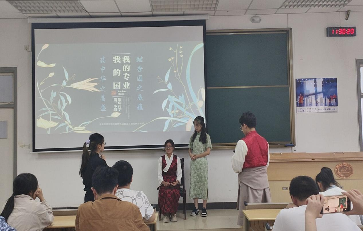(通讯员:徐薇、杜佳宁)藏族员工穿出了民族服装、药学同学换上了白大褂、天津同学讲起了天津方言、金融专业同学化身成了“新质生产力”宣讲员……,在闫帅老师的四个课堂上,基础医学、中西医、麻醉、法医、临床药学、医学检验、营销、物流、工商、国际贸易、金融工程等专业的同学运用情景剧、歌曲、相声、脱口秀等多种方式,形象地阐述了各自专业在国家发展和社会进步中所扮演的关键角色和做出的卓越贡献,并对专业的未来发展前景做出了展望。