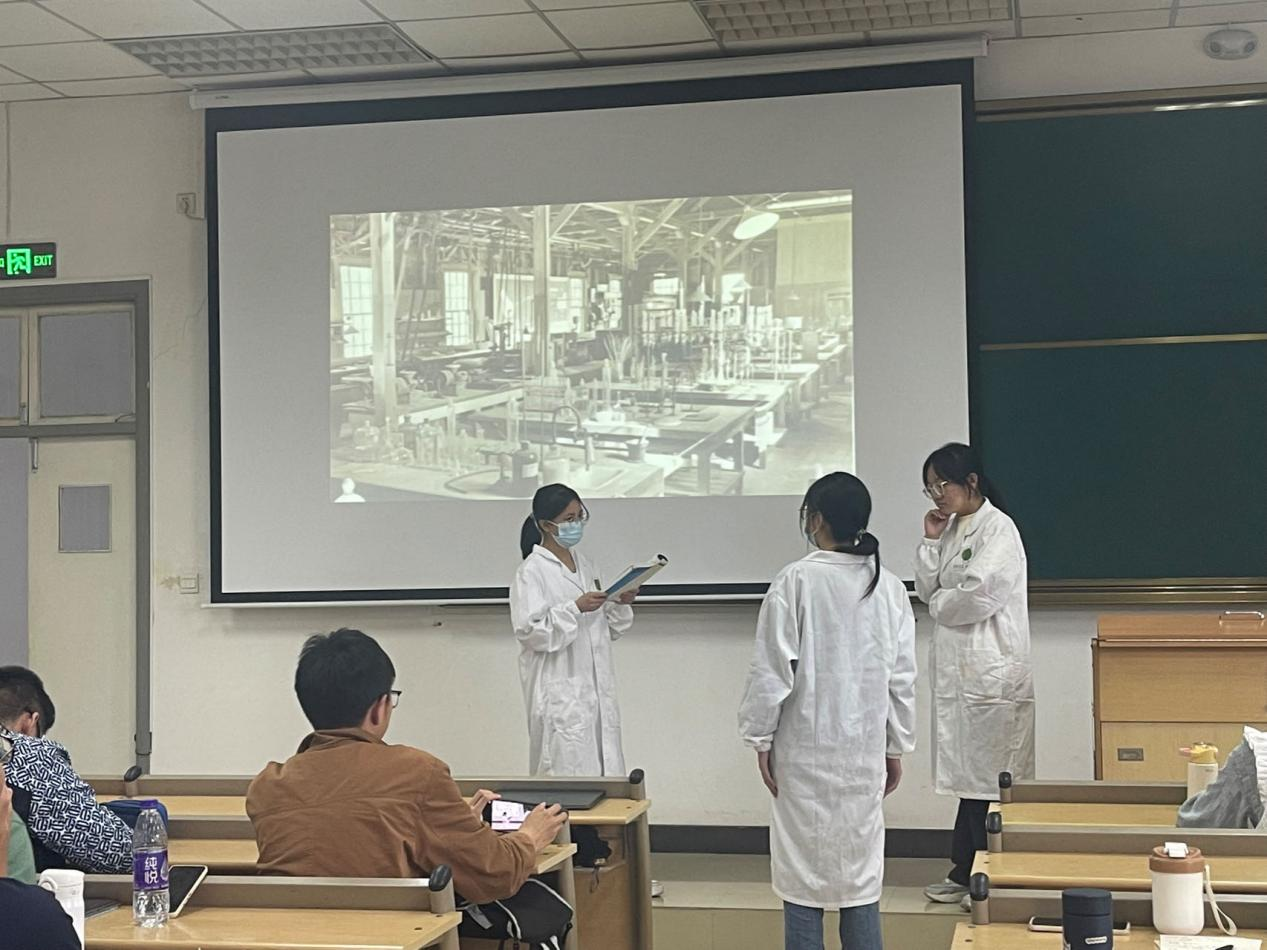 “有机化学,太难了,药学我读不下了,我想转专业。”临床药学2301班同学的情景剧“紫菀的专业抉择”,根据一个同学的经历改编而成,从刚开始被调剂到药学的担忧,亲身接触后的满怀激情,到在学习困境中萌生转专业的想法,再到受到屠呦呦提取青蒿素的激励,思量清楚,最后坚定不移做一名药员工。精彩的演绎,不仅展现了新中国药学的发展历程,还展现了新时代药员工的使命担当,赢得了持续不断的掌声。而在观众中,整个教室的最后一排,坐满了国际职工,他们本来是隔壁班的同学,正在进行课间休息,结果却被精彩的表演吸引而来。