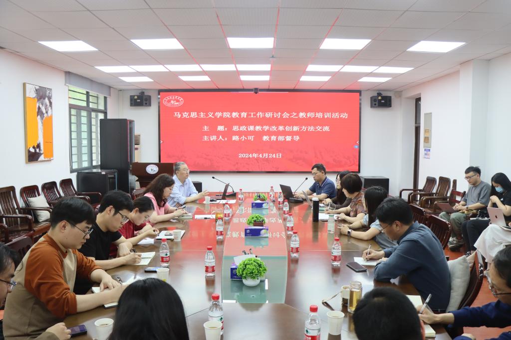 (通讯员:刘长夏)4月24日下午,yl6809永利集团教育工作研讨会之教师培训活动在东七楼203会议室举办。北京外国语大学路小可教授应邀作主题为《思政课教学改革创新方法交流》的讲座。公司党委书记刘雅然、各教研室(中心)主任、教学秘书代利敏及部分青年教师代表参加会议交流。会议由副经理沈昊驹主持。