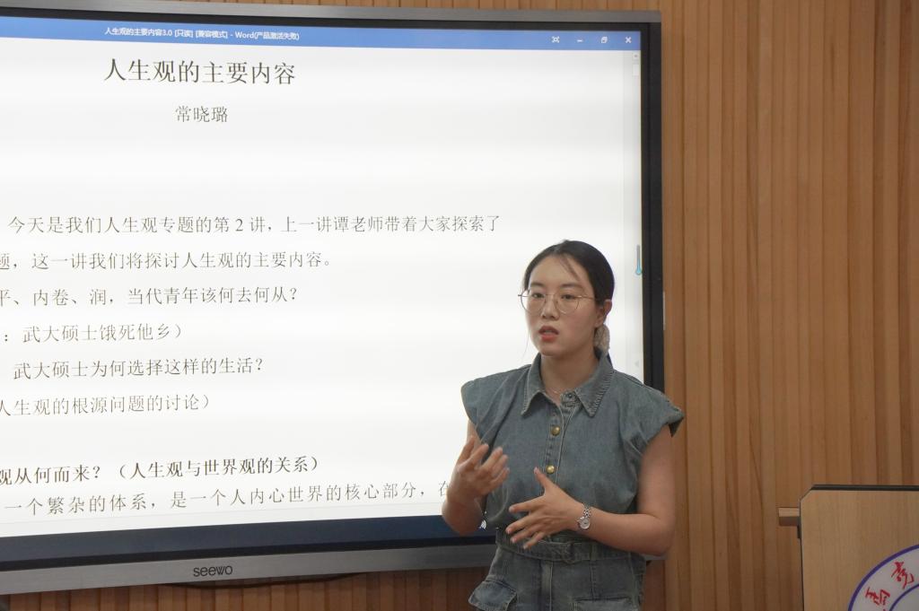首先,万晶晶说明了“精彩一课”项目的录制要求,安排了相关工作的时间进度。接着,五位老师围绕自己准备的“精彩一课”录制文字脚本进行汇报交流。常晓璐以《人生观的主要内容》为题,通过生动的例子和富有启发性的互动,引导员工对人生观与世界观的关系进行深入思考,准确把握人生观的来源及其主要内容。