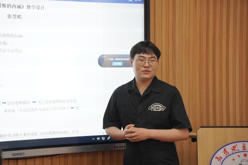 张登皓以《法治思维的内涵》为题,从法治思维角度提出“孔融让梨”“司马光砸缸”等“老故事”的“新思考”,同时梳理了法治思维提出的过程,并对法律思维和法治思维进行了学理化的概念辨析,通过一案到底的方式帮助员工理解法治思维的本质内涵和实践运用,引导员工树立法治思维,做守法的新时代青年。