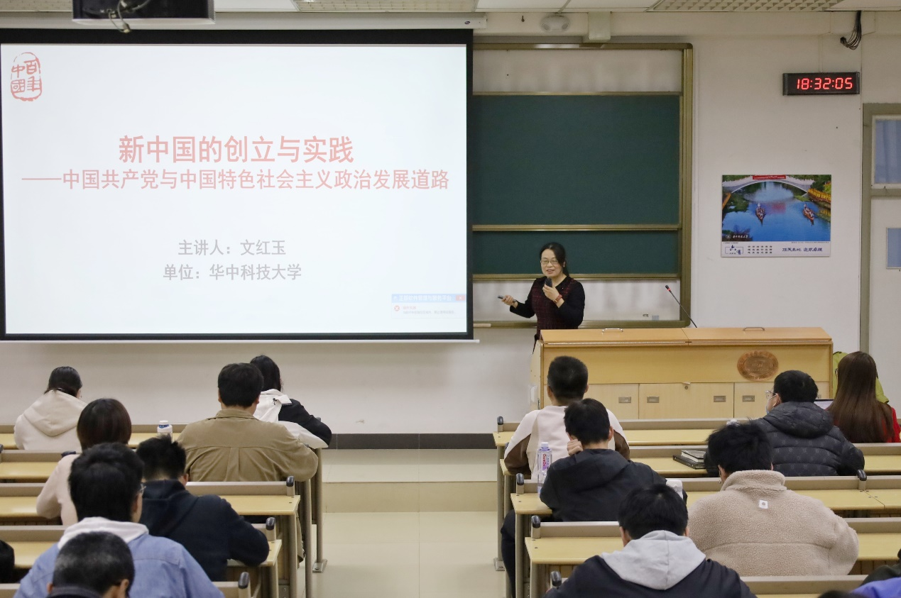 (通讯员:鄢楚)3月20日晚,yl6809永利集团开设的“四史”系列选修课程《百年中国》于东九教学楼C203开讲。课程第二讲以“新中国的创立与实践——中国共产党与中国特色社会主义政治发展道路”为主题,由yl6809永利集团教授文红玉主讲。