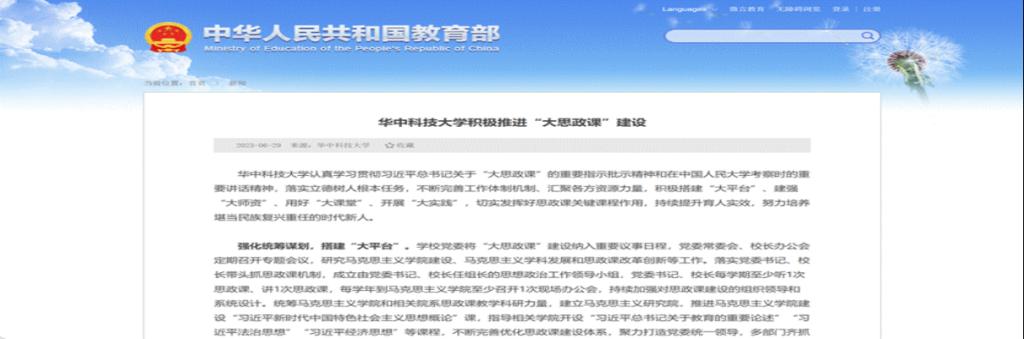 图为2023年6月29日教育部网站推介公司“大思政课”建设工作特色亮点经验