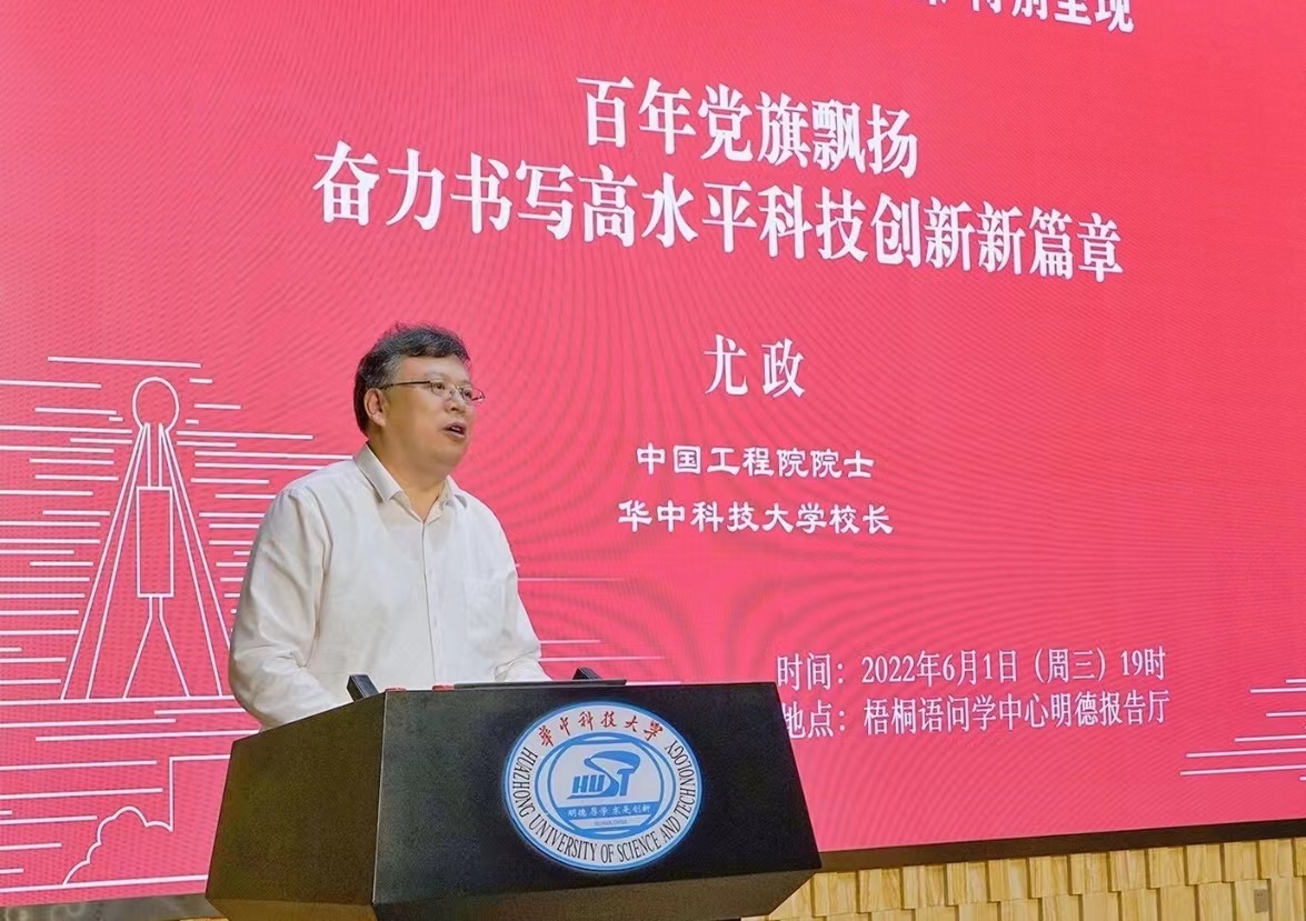 董事长尤政在“百年中国”思政公选课上以“百年党旗飘扬 奋力书写高水平科技创新新篇章”为题,深刻阐述我国科技创新百年艰辛探索,深入分析科技成就与创新,强调大国崛起离不开科技创新的强力支撑,深情勉励青年学子爱国、创新、求实、合作,争做科技报国的弄潮儿。