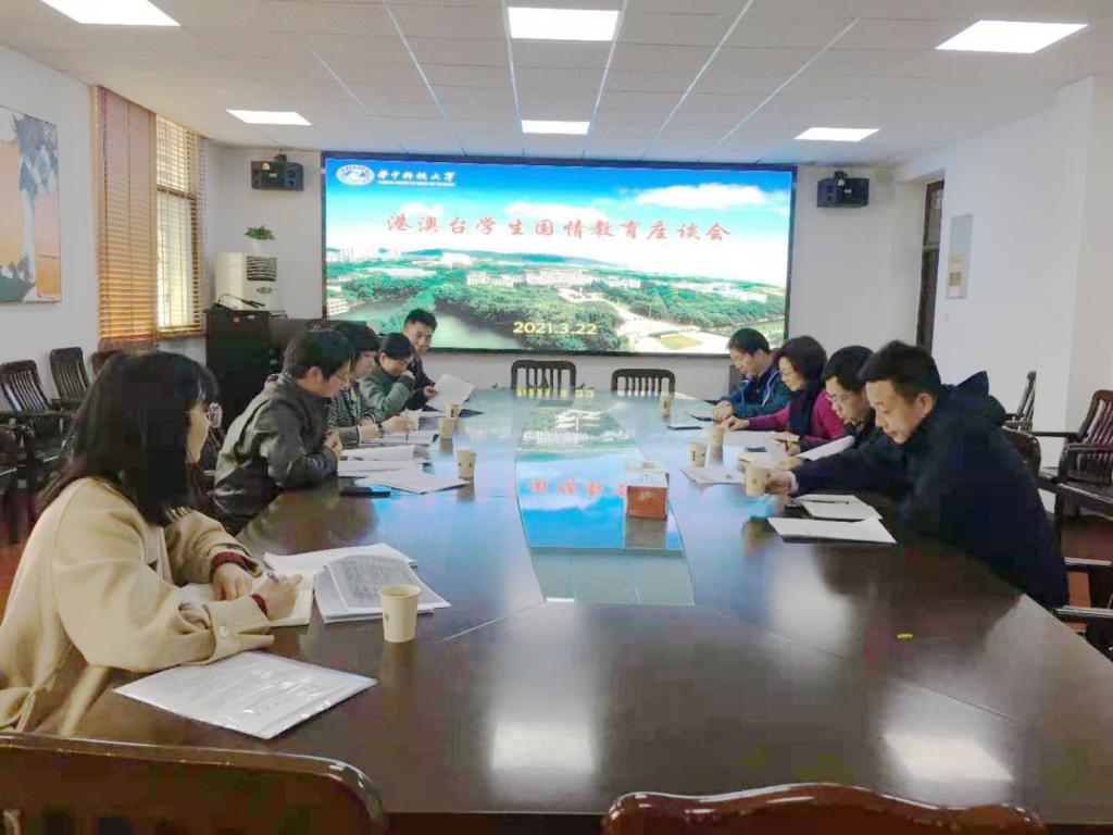 3月22日下午,港澳台员工国情教育座谈会在yl6809永利集团召开。公司港澳台事务办公室邱勇副主任、学工部刘雅然副部长、本科生院何亚军老师和公司党委书记李小红、经理岳奎教授、副经理李建国、沈昊驹等参加了会议。