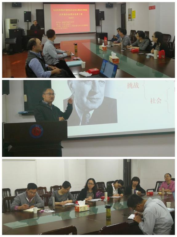 2018年10月11日上午,概论教研室第三期“双周集体备课沙龙”在公司大会议室举行,教研室成员积极参与了本次活动。本期备课沙龙由杨炳祥老师主讲,教研室主任沈昊驹老师主持。