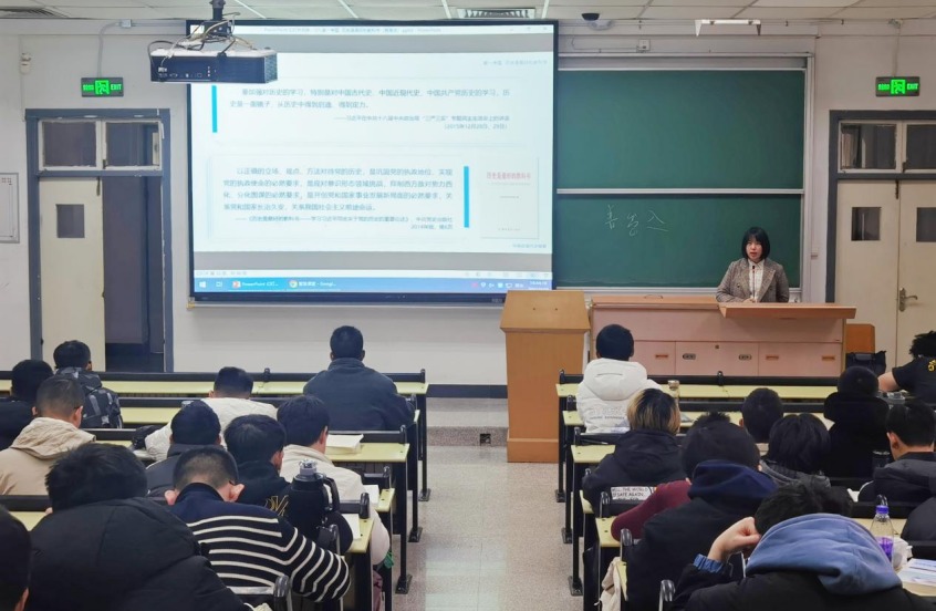 奚哲老师以“历史是最好的教科书”为主题,把新时代老员工为什么要学习中国近现代史、如何认识中国近现代史的分期、如何把握中国近现代史纲要的学习目标和要求、如何树立并坚持科学的历史观等几个方面的问题向同学们娓娓道来。