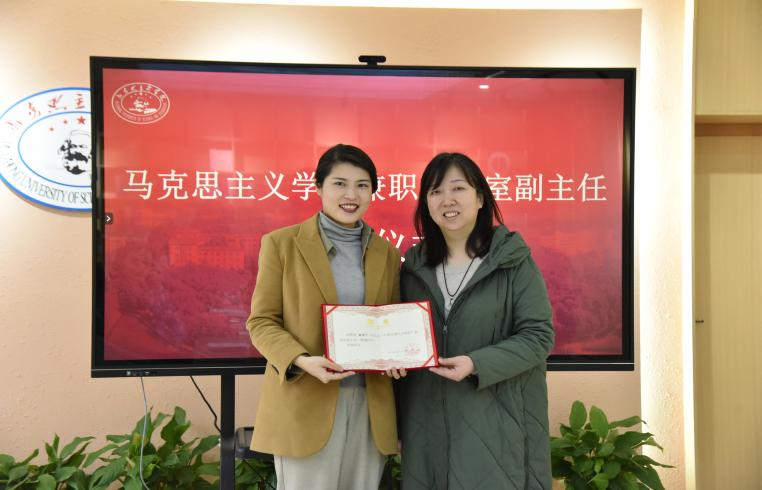 会议伊始,刘雅然依次为孙伟、王曦、彭鹤翔、杨柳、何陈晨、张誉千、欧阳真等7名兼职教师颁发聘书。