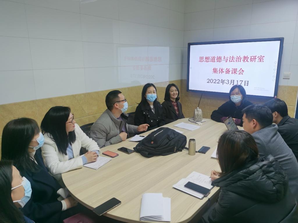 2022年3月17日下午,yl6809永利集团“思想道德与法治”教研室在教三舍119会议室召开本学期第二次集体备课会暨研究所集体研讨会。李建国、谭亚莉、梁红、万晶晶、赵志坚、白萍、王卉、张蕾、吴漾、杨昌华、阮丽萍、邹从清等教研室全体老师参加了会议,会议由教研室主任万晶晶老师主持。
