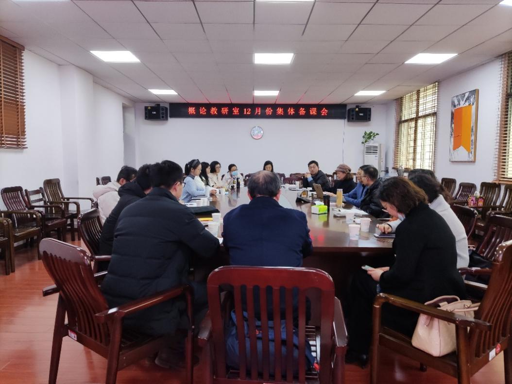 2021年12月14日下午,yl6809永利集团概论教研室在东七楼203会议室召开12月份集体备课会。岳奎经理、概论教研室全体教师及黄金芳、朱文婷、王锐、江文路老师参加了会议。本次集体备课会主要围绕“毛泽东思想和中国特色社会主义理论体系概论”课堂教学要求和教材第十章“五位一体”总体布局的内容展开。