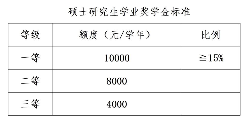 (二)硕士学业奖学金,奖励标准为:一等学业奖学金10000元/年/生,二等学业奖学金8000元/年/生,三等学业奖学金4000元/年/生。