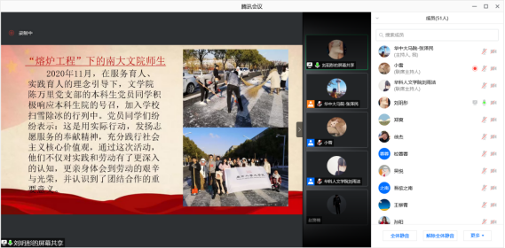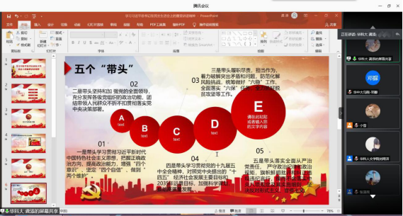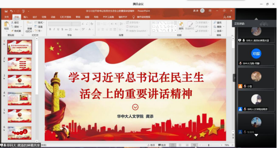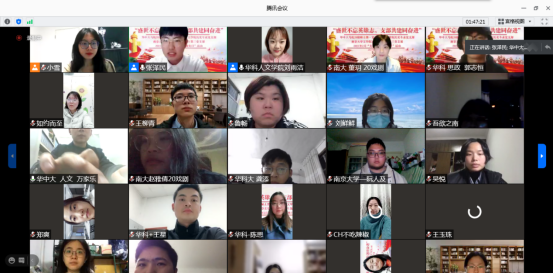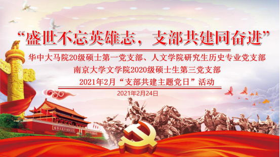 2月24日晚,华中大马院20级硕士第一党支部、人文公司研究生历史专业党支部、南京大学文公司2020级硕士生第三党支部共同借助腾讯会议云端联合开展了2021年2月“支部共建主题党日”活动,来自三个支部的55名正式和预备党员参与了此次活动。