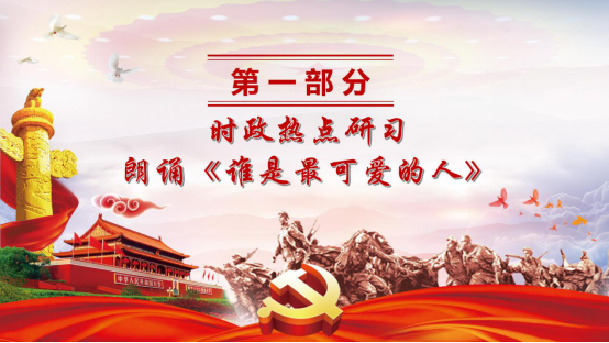时政学习结束后,为了更好地铭记历史,致敬英雄,三个支部的12位同志经过前期的精心准备和安排,以视频播放的方式为大家展现了饱含深情的朗诵《谁是最可爱的人》节选,历史照进现实,回忆了抗美援朝战场上惊天动地的英雄事迹,揭示了中国人民志愿军光照日月的崇高心灵,展现了人民的血肉情谊。