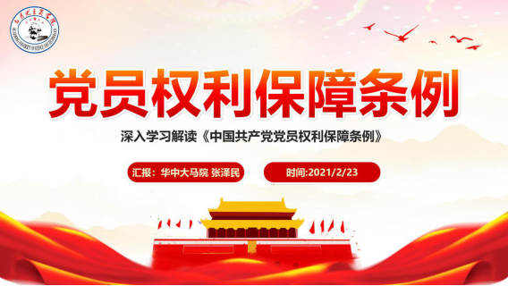随后,三个支部分别带来专题微党课。华中大马院20级硕士第一党支部书记张泽民围绕深入学习解读《中国共产党党员权利保障条例》开展微党课,以《条例》的基本概况,新修订《条例》的主要内容以及党员行使的权利等七个方面的重点解读和条例逐条解析为三个切入点,让同志们更好地理解相关内容。