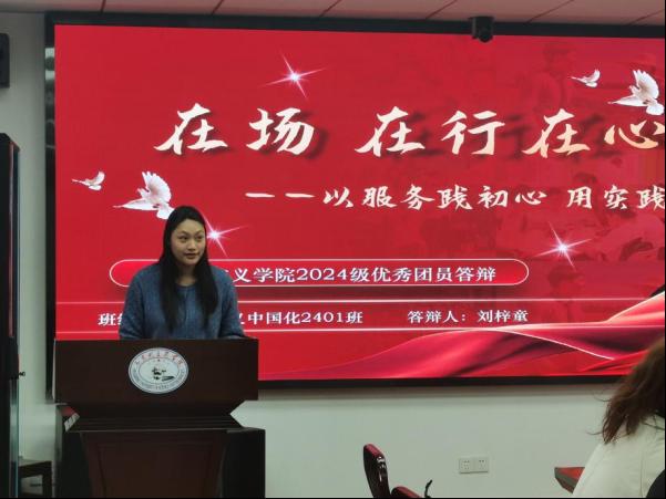 会议第三项是民主评议。在此环节中,参评成员依次登台,具体介绍自身在理论学习、社会实践等方面的优秀表现,与会成员以客观公正的态度进行打分评选。