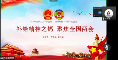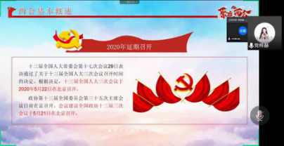 本次微党课的主讲人是党梓赫和曹志磊同志,他们围绕两会讲述了一堂深刻而又具有启发意义的微党课。党梓赫同志首先为大家介绍了两会的基本情况,并谈道今年两会的五个变化:时间推迟、会期缩短、治理主题瞩目、“下团组”次数减少、隔屏交流增多。最后,她以视频展示和线上讲解相结合的形式带大家学习了政府工作报告中的要点。曹志磊同志则以思维导图的形式罗列了习总书记在参加湖北代表团审议时的讲话重点,通过分享习总书记讲话中的金句,使支部成员体会党中央牵挂湖北人民、心系湖北发展的为民情怀。