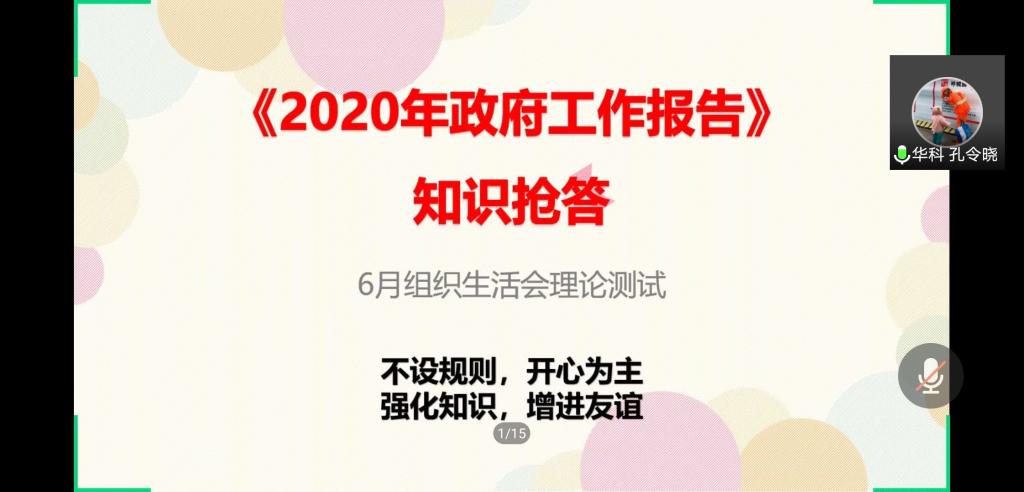 接下来,参会的党员同志们围绕着2020年政府工作报告的内容进行了理论知识抢答活动。双方党员同志积极踊跃抢答,主持人孔令晓同志在抢答结束后还对题目进行了详细的分析讲解,同志们在轻松愉快的氛围中复习巩固了2020年政府工作报告的相关理论知识。