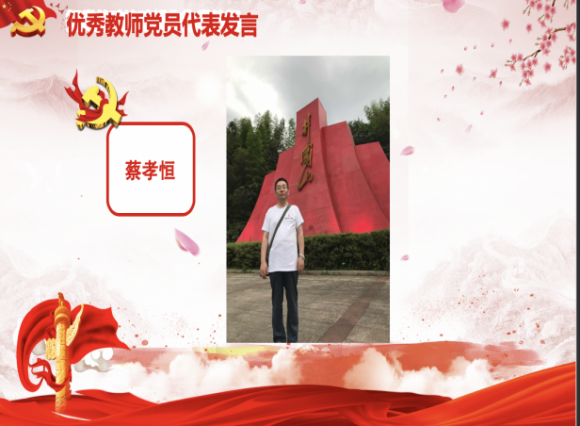优秀教师党员蔡孝恒、先进教师基层党组织代表杨成林发言