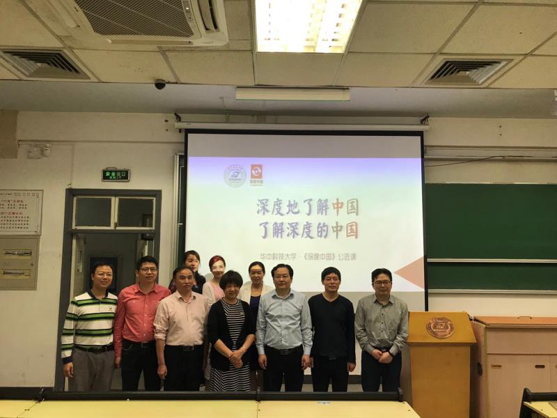 精品思政公选课“深度中国”引起越来越多的同行关注。2019年4月24日晚上6:15分,武汉工程大学yl6809永利集团经理舒先林、党委书记吴秋凤、副经理何景春、杨克平以及其他5位骨干教师莅临西十二教学楼N101教室,现场指导“深度中国”教学。