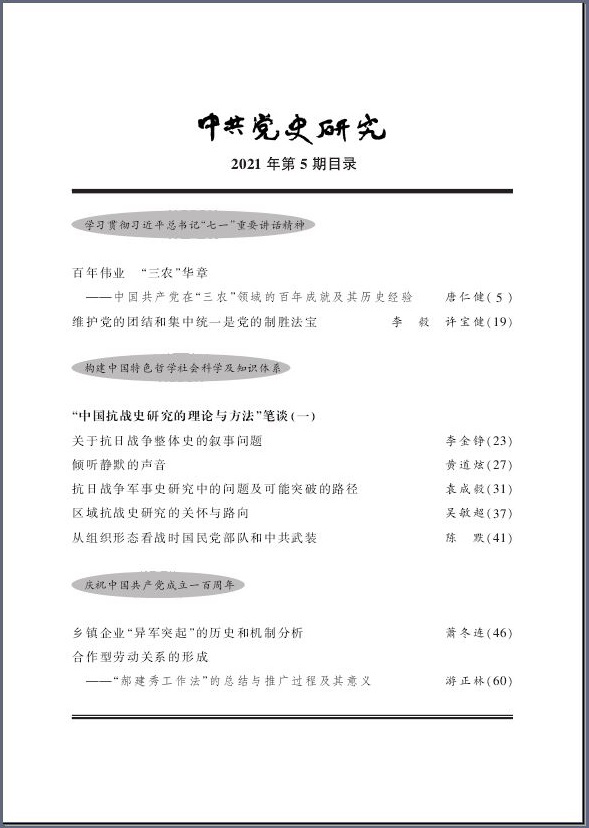 《中共党史研究》创刊于1981年,是由中国共产党中央党史和文献研究院主管、主办的学术理论期刊,是国家社科基金资助期刊、南京大学“中文社会科学引文索引(CSSCI)来源期刊”、北京大学“中文核心期刊”、武汉大学“RCCSE中国核心学术期刊”、中国人民大学“复印报刊资料重要转载来源期刊”。