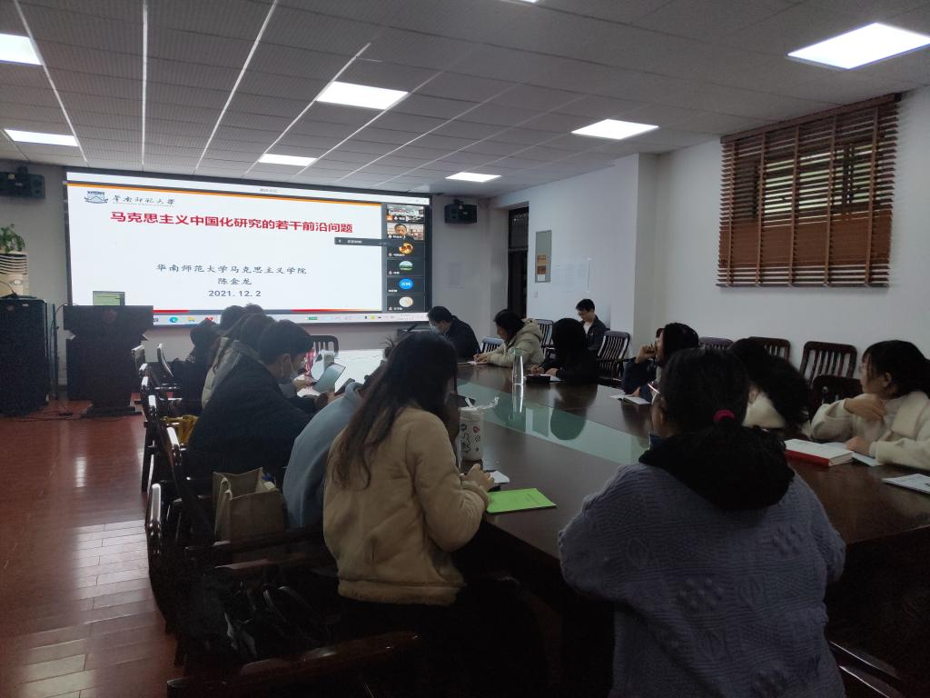 2021年12月2日晚,公司第83期喻园求真学术讲座于公司203会议室召开,邀请华南师范大学yl6809永利集团经理、教授、博士生导师陈金龙进行了题为“马克思主义中国化研究的若干前沿问题”的专题讲座。