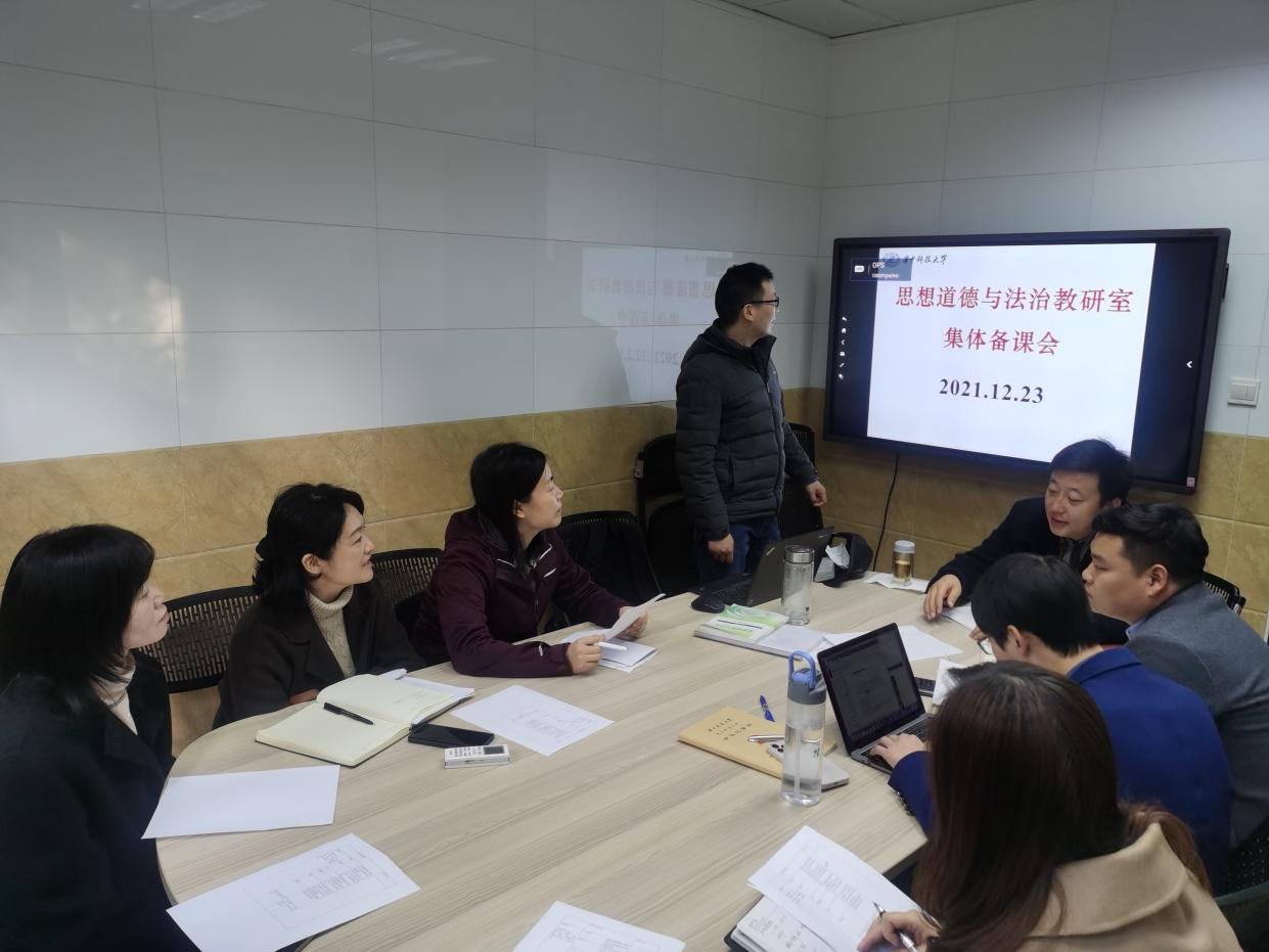 本次集体备课会主要针对课程中法治部分的教学重点与难点展开讨论,老师们深入交流了2021版新教材第六章中出现的新内容和新精神,就如何讲好习近平法治思想进行了经验分享。此外,老师们还各抒己见,讨论了平时成绩记录和考试评分规则等问题,为实现学习效果评价科学化提供了宝贵建议。