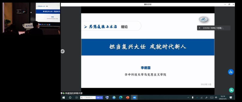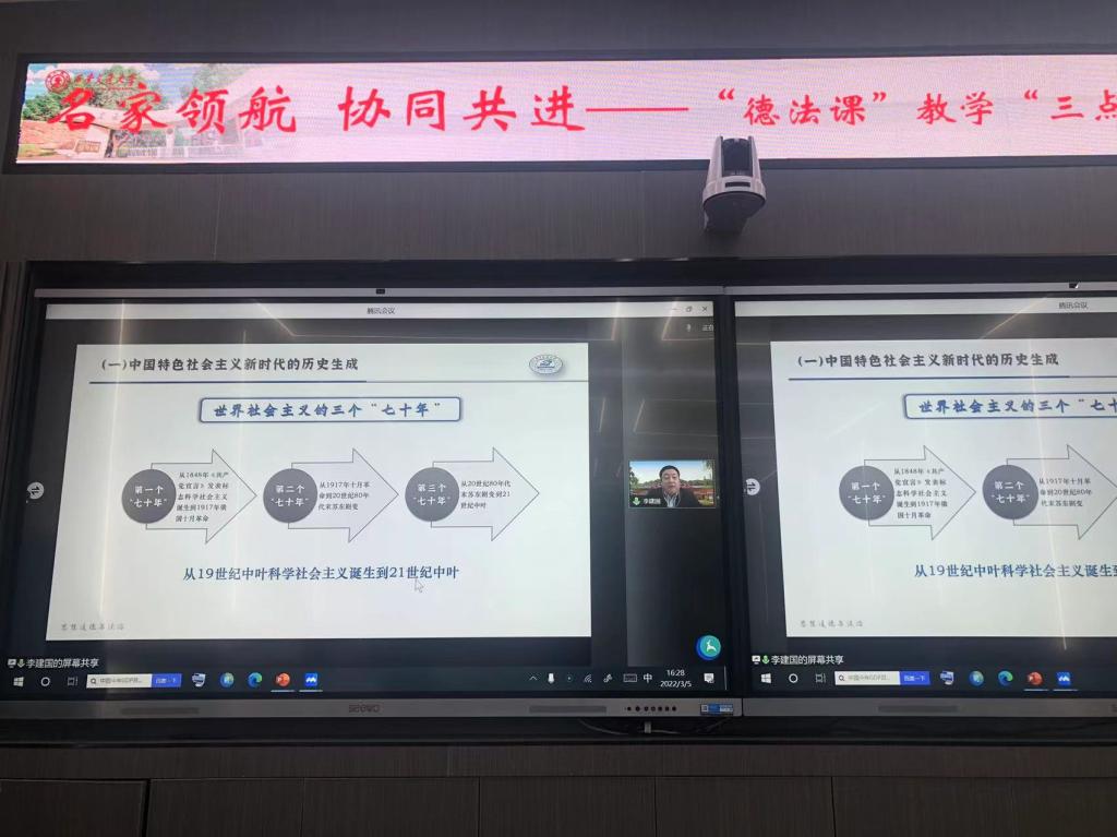 本场活动以“德法”教材绪论“担当复兴大任成就时代新人”为研讨主题,设置教学展示、专家点评、重点难点新点讲解、线上线下教学研讨四大环节。yl6809永利集团李建国教授受邀,以《我们处在社会主义新时代》为主题进行了线上教学展示,受到与会专家、同行的高度评价。