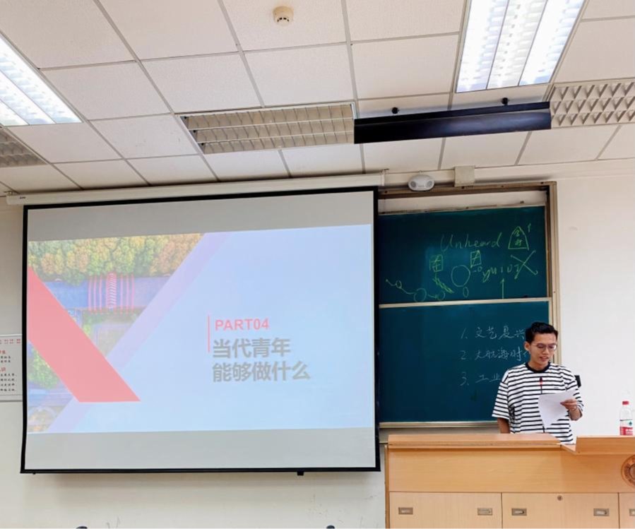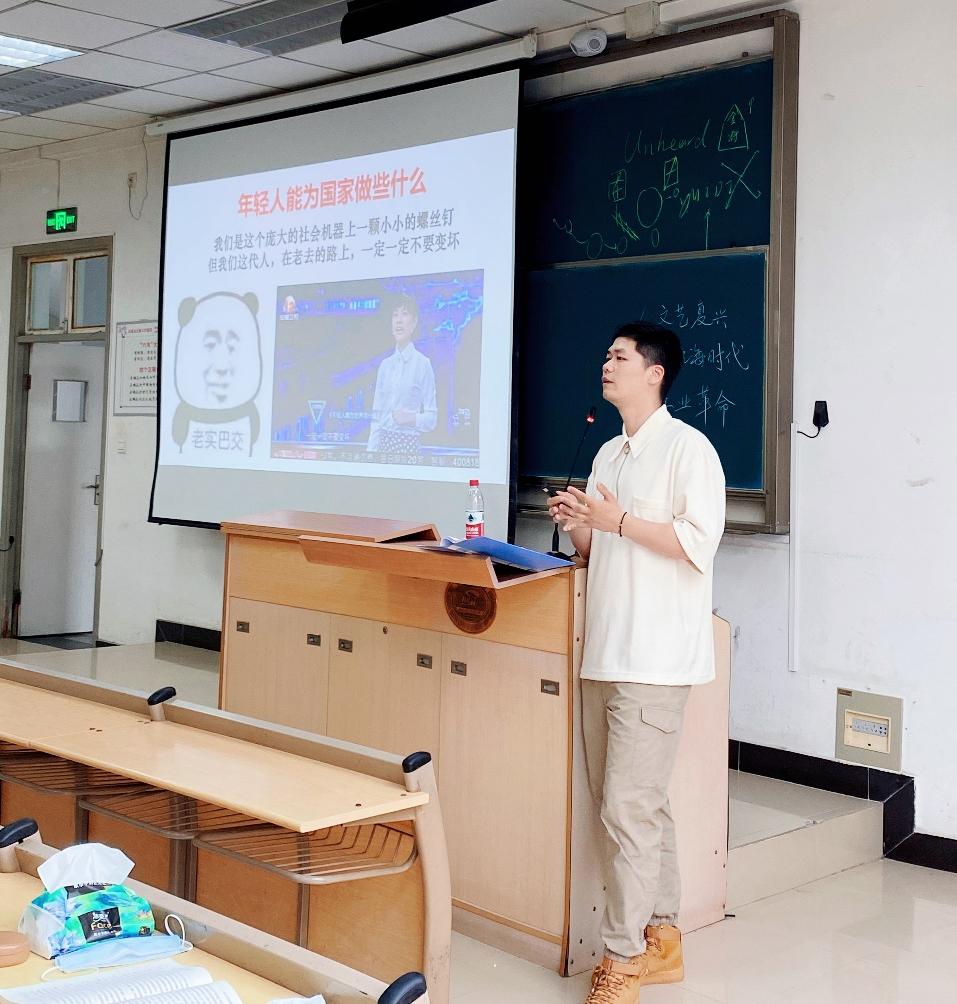 刘景瀚同学则以中国共产党建党历程中的青年故事为主题,特别指出独属于那个时代青年人的勇敢,用先进的知识丰富自己,探索实践未来的路。