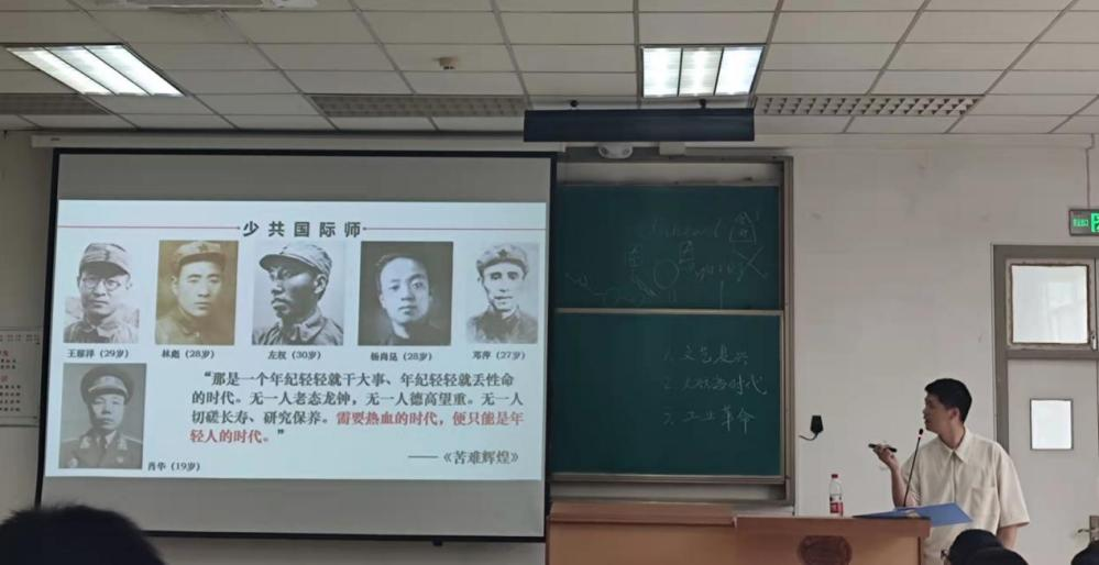 这次专题教学以“传承百年五四精神,绽放时代青春力量”为主题。在回顾旧知后,朱江老师以五四运动为切入点,引出了“少共国际师”的传奇,当谈到一批平均年龄仅仅28岁的青年人以自己的鲜血与理想铸就了党和国家的辉煌时,他引用《苦难辉煌》中的句子:“需要热血的时代,便只能是年轻人的时代”。在那个火热的革命时代,一代代先烈们用坚定而拼搏的姿态证明,即使年纪轻轻也能有干大事的决心和行动。立足新时代,青年员工更应听党话、跟党走,不负韶华,不负时代,不负人民,在青春的赛道上奋力奔跑,跑出当代青年人的最好成绩!
