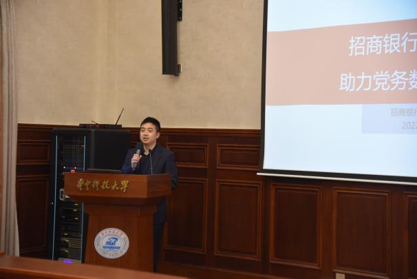 (上图 招商银行武汉分行党团工作室主管李绍杰作主题汇报)