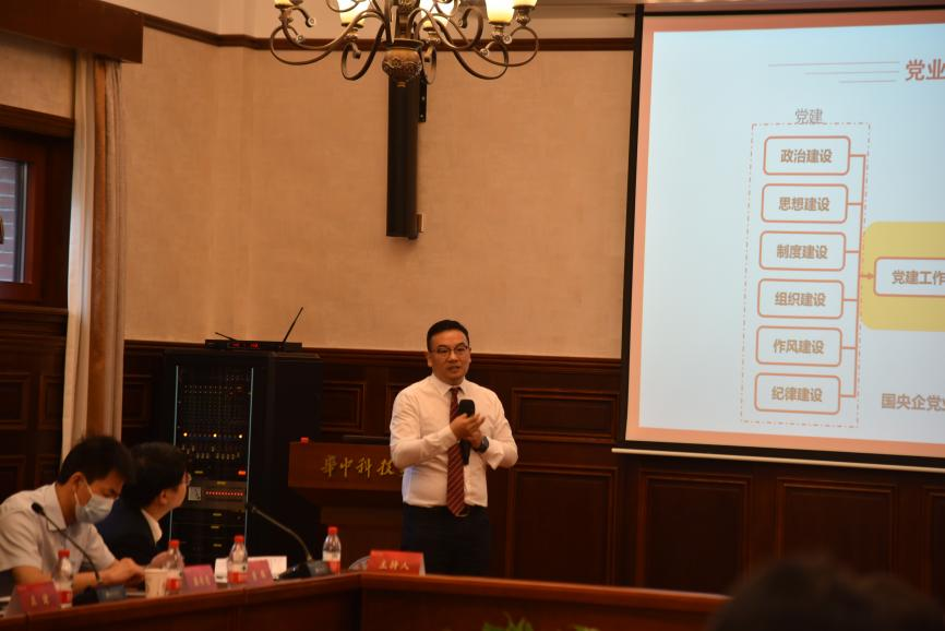 招商银行武汉分行党团工作室主管李绍杰重点交流了如何利用科技手段建设智慧党建、助力党务数字化工作发展;长飞光纤光缆股份有限公司党委副书记张光华以“创新工作方法和配套绩效考核,推动党建与业务有效融合”为题展开分享;红舰智库专家、武汉中慧文化发展有限公司总经理徐晓丹结合自身实践围绕党业融合议题作专题汇报。