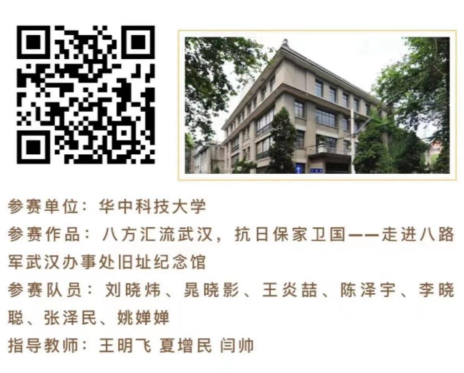 据悉,团队成员发扬求真务实、顶天立地、追求卓越的精神,克服了竞赛周期长、作品制作难度大以及疫情等诸多困难和挑战。在八路军武汉办事处旧址纪念馆工作人员的热情帮助下,团队获取到了兼具真实性和准确性的关键史料。在遇到困难时,指导老师总是第一时间给出解决方案、提出改进建议,确保了比赛作品的顺利完成。