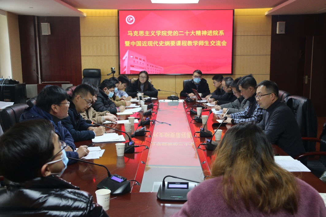 在师生互动环节,同学们纷纷认为马院开设的“中国近现代史纲要”等课程对于进一步了解历史、提升理论素养具有重要意义,重点围绕课堂互动模式、教学内容和教学案例以及课程难点等问题提出建设性意见,教师们给予了积极回应。