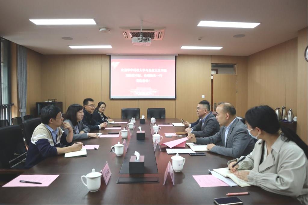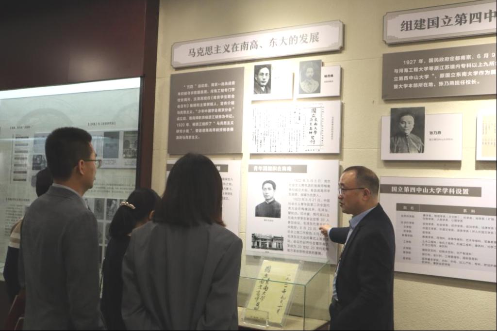 4月10日上午,在南京大学,公司党委书记王建华介绍了南京大学全国重点马院的建设经验与规划;经理胡大平认为yl6809永利集团在建设发展中要善于将传统的学术积累转化为有方向的发展;公司党委副书记时昱介绍了教工党支部与员工党支部的党建经验与做法;副经理吴翠丽着重介绍了思政课教学、梯队建设、青年教师培养、公司产品方面的成果。交流讨论后,王建华带领参观南京大公司史馆,介绍了南京大学深厚的历史积淀和马克思主义在南大的发展。