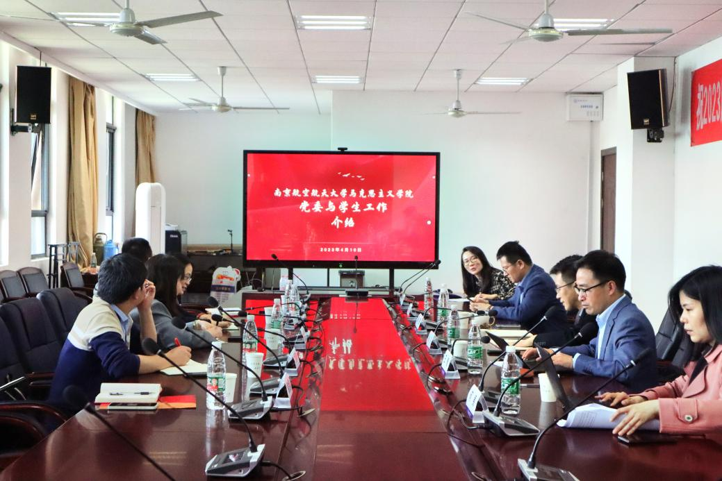 4月10日下午,在南京航空航天大学,公司党委书记徐川全面介绍了公司全面从严治党落实情况;经理王智分享了在团队建设、团队引进、社会服务等方面的措施和成效;公司党委副书记阙愚介绍了南京航空航天大学在开发“有魅力、有张力、有活力”的思政课、员工生涯规划和导学关系畅通建设等方面的做法;副经理何畏就教学与科研的良性互动与公司产品的相关经验成果进行了交流;副经理陈红桂公司在教学研究和新老教师传帮带等方面做了介绍。座谈会后,参观了将军路校区御风园,经理王智介绍了公司结合南京航空航天大公司本资源创新特色思政课的经验与服务航空、航天、民航发展的成果。