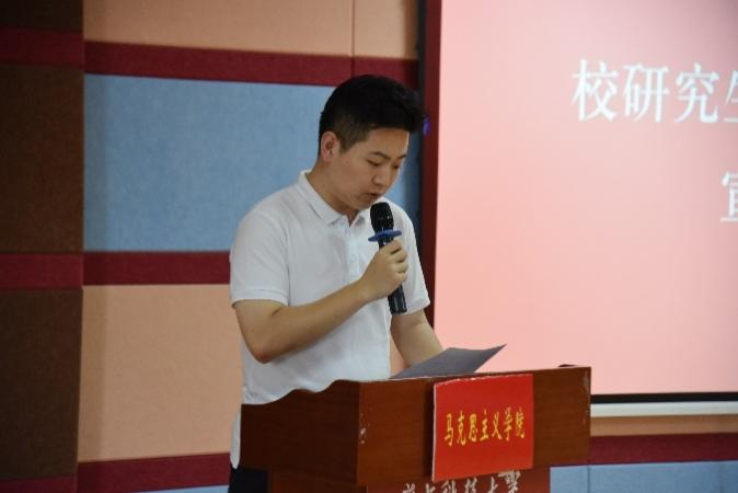 随后,王涵申宣读贺信。王明飞、刘雅然分别为第十六届研究生会代表、“服务之星”颁发聘书和荣誉证书。