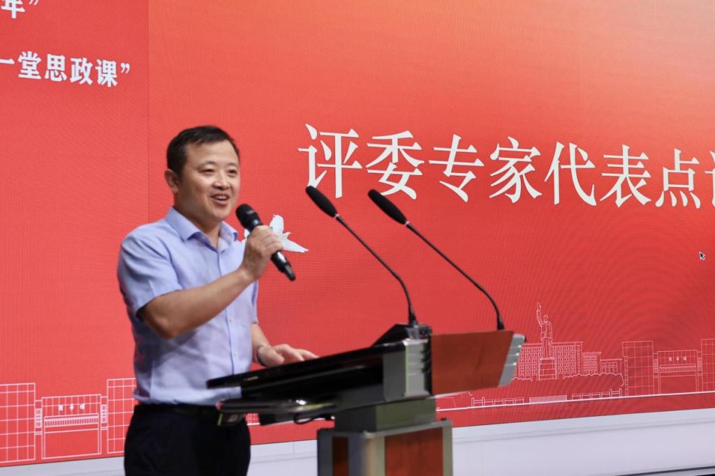 张涛华作为评委代表对选手表现进行点评。他首先对“同上一堂思政课”的“上”和“思政课”进行了内涵解读,从联系理论前沿、讲课形式差异及教学案例设计等方面对“上好思政课”提出建议,对此次参赛选手的精彩表现表示高度赞赏。他期望未来同学们能够继续积淀专业知识、打磨授课技巧,发扬红色精神,弘扬时代新风,把思政课进一步讲深、讲透、讲活。