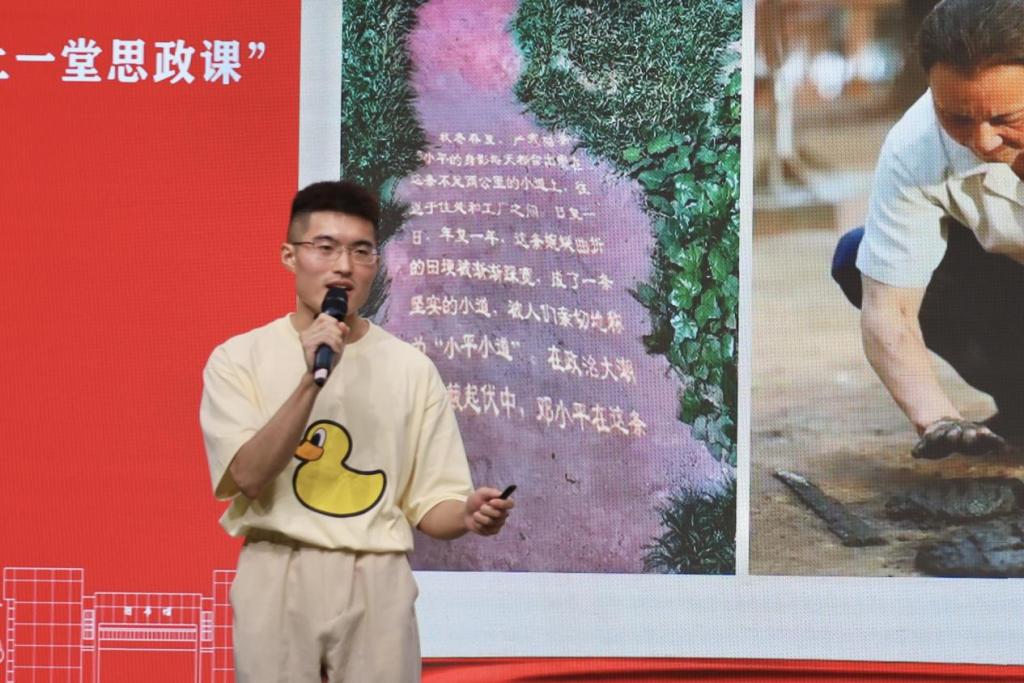 来自中南财经政法大学的梁犇团队以《邓小平理论的历史地位之改革开放和社会主义现代化建设的科学指南》为题,从发展“总”目标、“总”战略、“总”动能、“总”目标出发展开生动讲解,阐释了邓小平理论的历史地位和重要性。