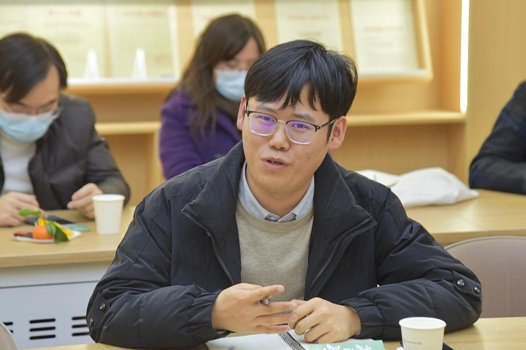 概论教研室党支部书记吕洪良从“育人”和“育儿”两个角度为青年教师介绍了自己在教育工作和家庭生活中的心得感想,并分享了自己调适心情的方法。他认为,应始终以饱满的热情和乐观的心态面对生活,在与员工、同事和亲人相处的过程中,也应做到与人为善、阳光向上,用正能量感染他人。