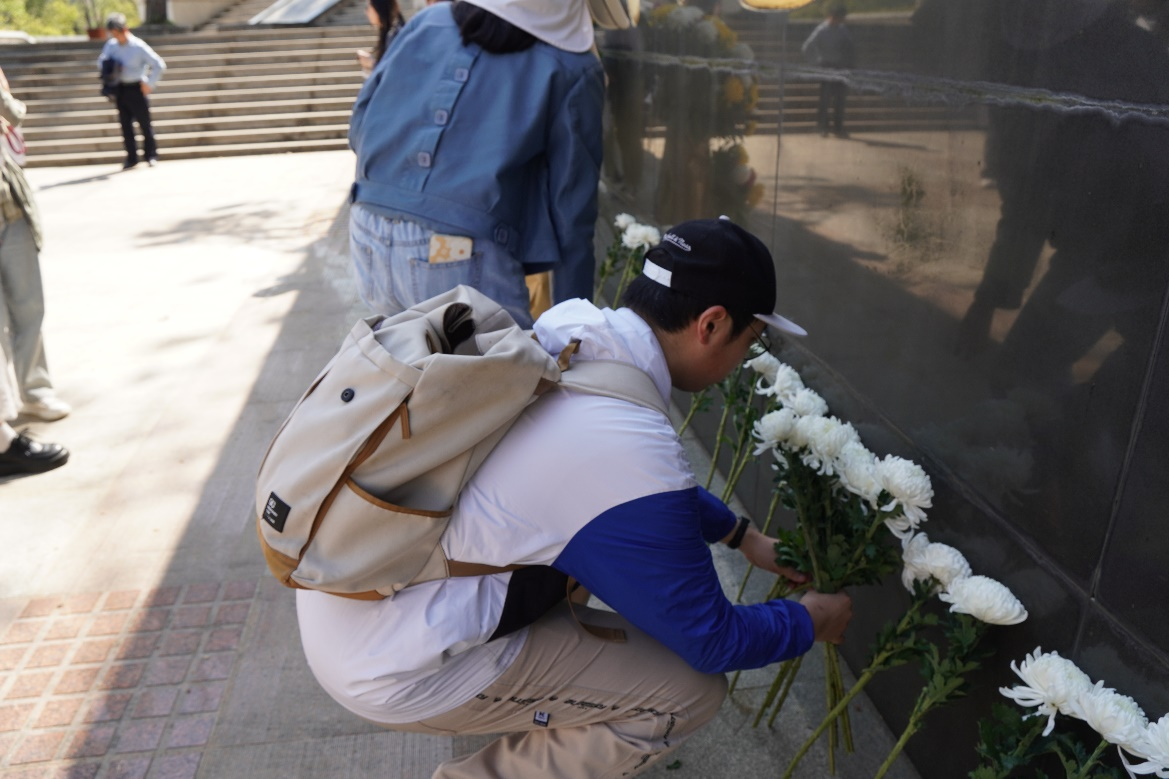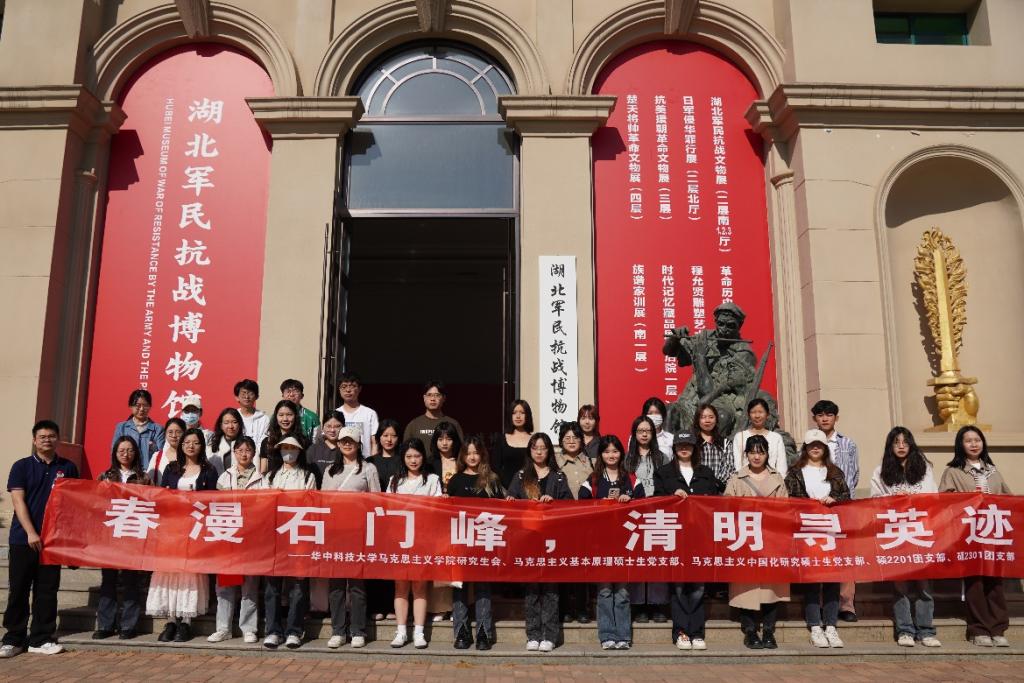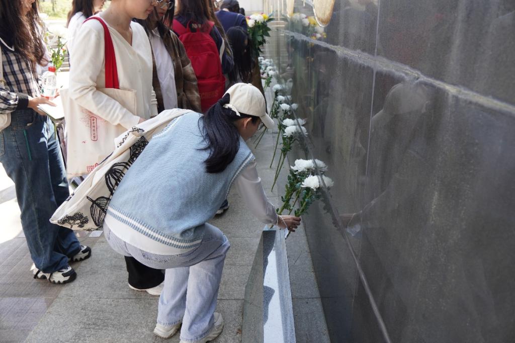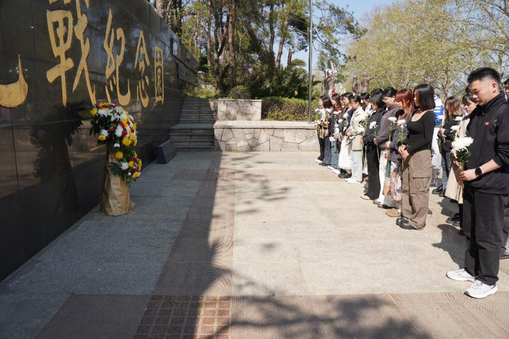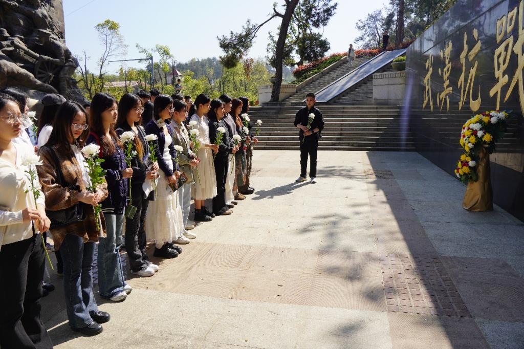 在武汉抗战纪念园,同学们开展了爱国主义教育活动,重温了中华民族历史上的那段重要篇章,对湖北地区在抗日战争中所发挥的重要作用有了更为深入的认知。随后,众人缓步走向纪念园石碑,在碑前整齐列队。在庄严肃穆的氛围中,全体人员庄重站立,向英烈们默哀敬礼。集体默哀结束后,大家依次为革命英烈们献上手中的花束,借朵朵白菊,寄托众人的绵绵哀思与崇高敬意。