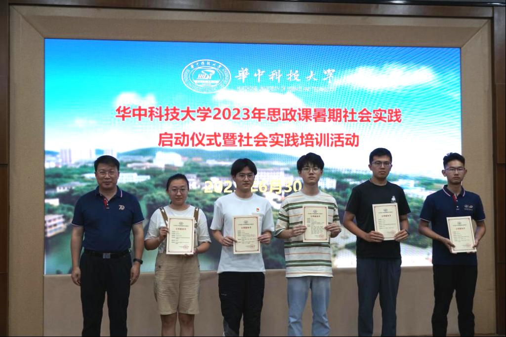 启动仪式上,岳奎为2023年思政课暑期社会实践立项团队员工代表颁发立项通知书并合影留念。
