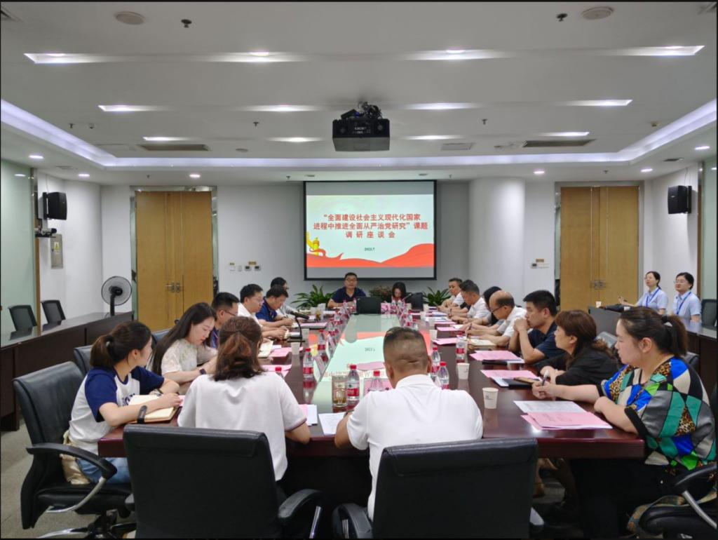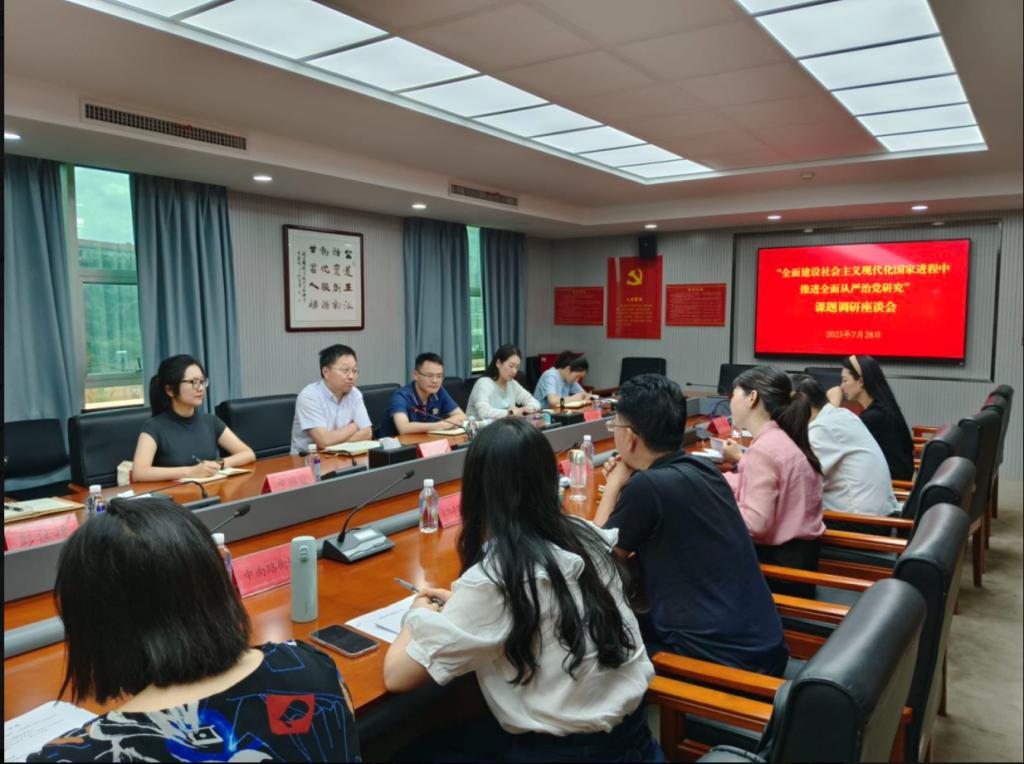 7月27日上午,在武汉市党建综合服务中心的统筹下,课题组一行前往武汉市硚口区开展全面从严治党课题座谈会。会上,硚口区委组织部、区纪委、区委办公室、区委政法委、区法院、区人民检察院、汉正街道纪工委、六角亭街道荣东社区等单位的主要负责人相继作汇报发言。汇报显示,硚口区深入践行新时代党的建设总要求,认真落实全面从严治党工作要求,在强化政治建设、强化理论武装、强化组织功能、强化正风肃纪反腐和责任落实等方面取得了显著成效。与会人员与课题组成员还进一步探讨了全面建设社会主义现代化国家进程中推进全面从严治党的举措建议。